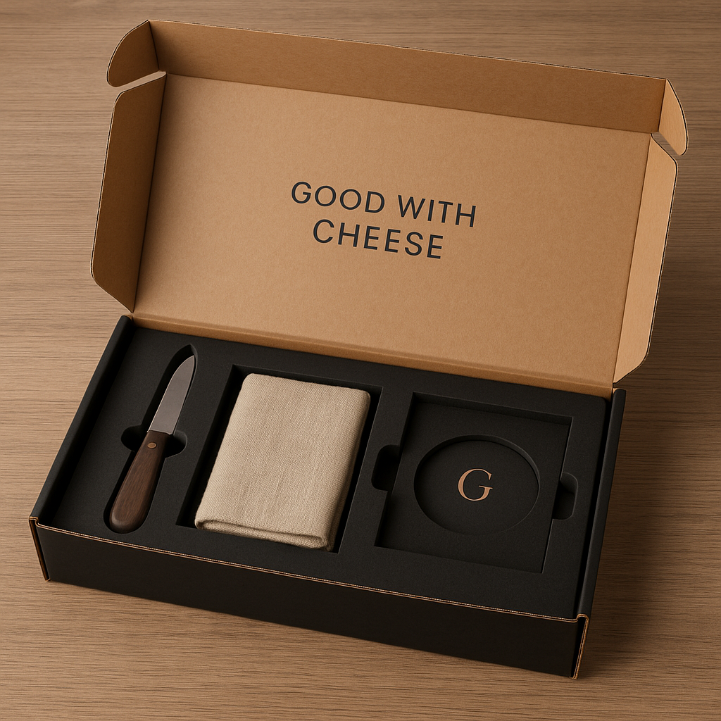 Welcome to Good with Cheese, your destination for select cheeses, elegant boards, knives, and curated gift hampers.